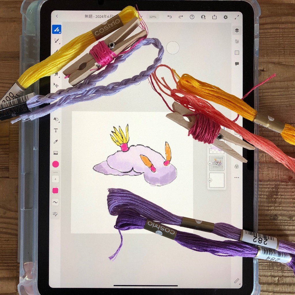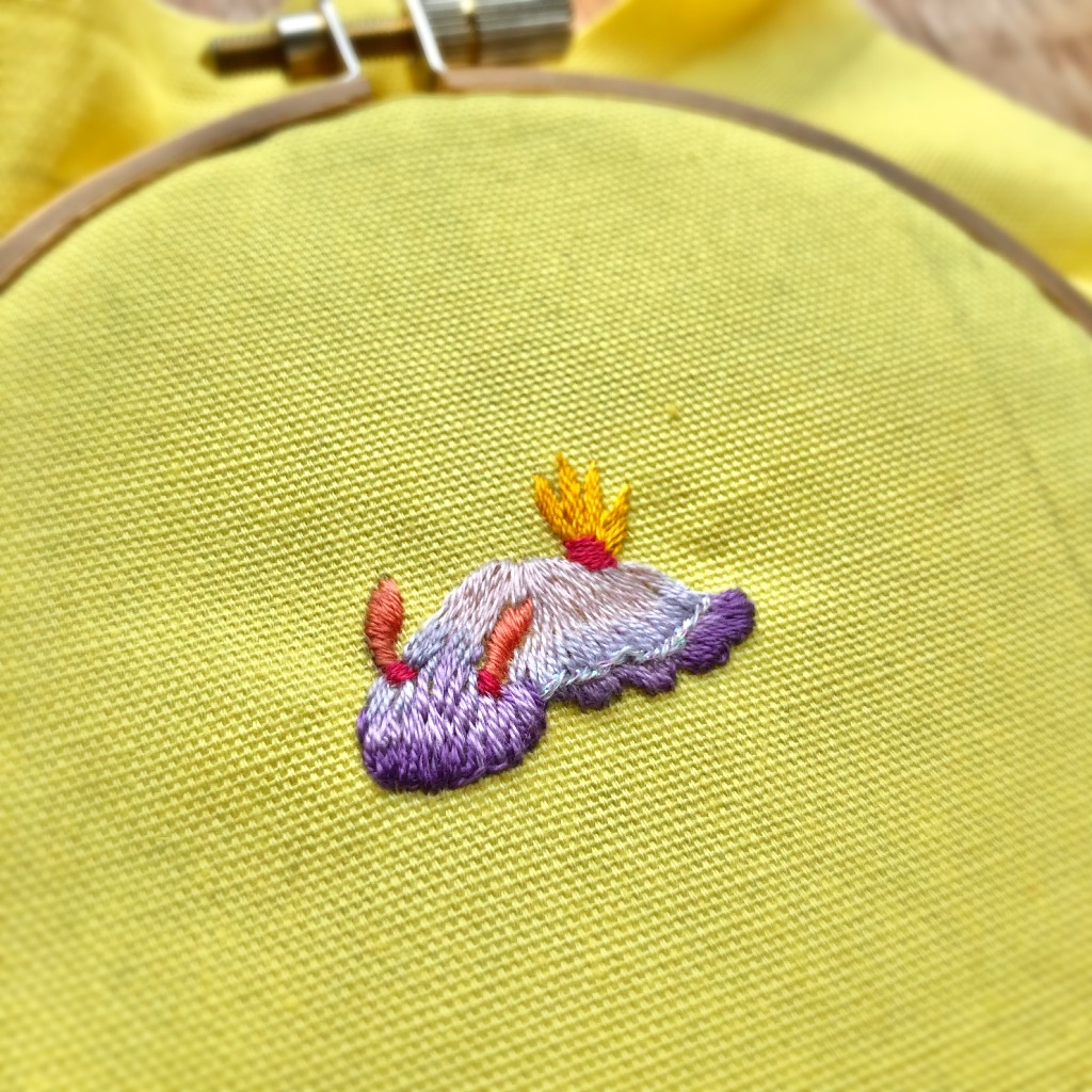 今日はオーダーいただいた、ウミウシの刺繍をしました。