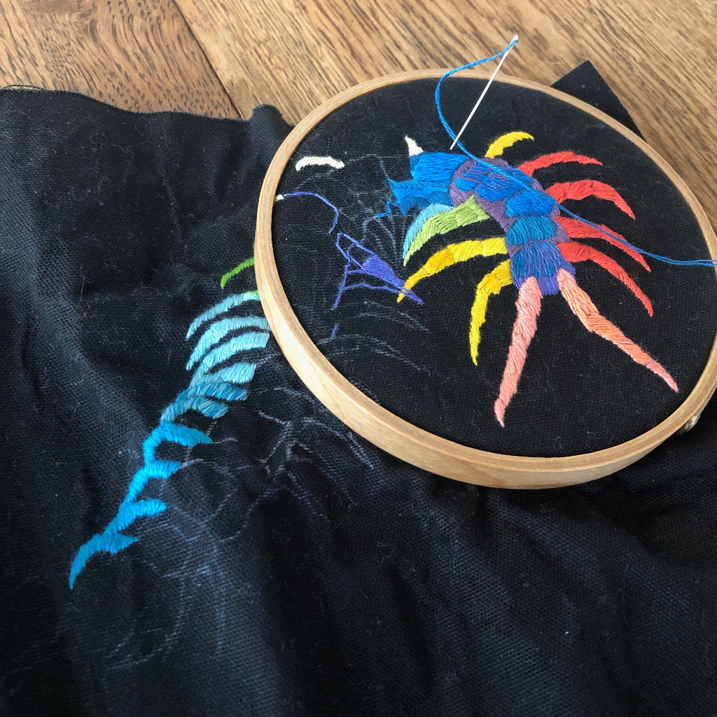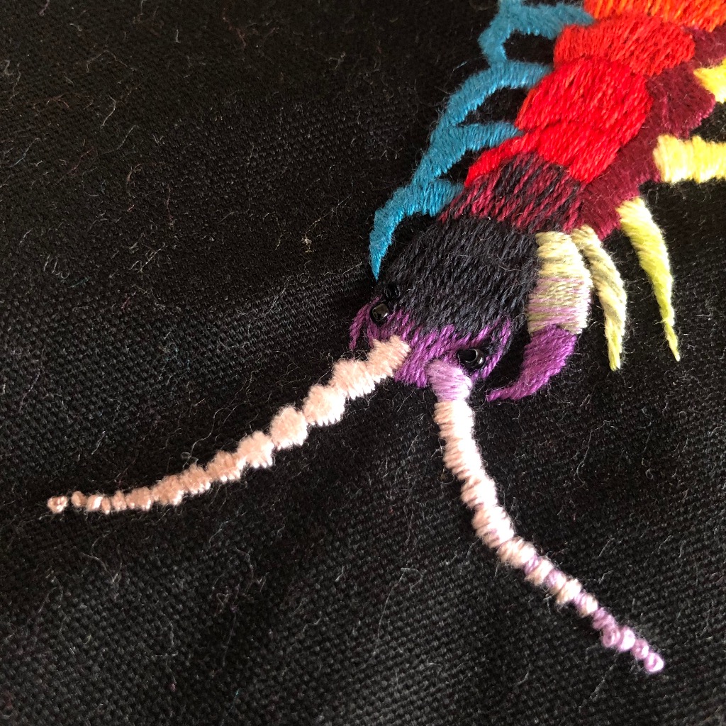 ムカデの刺繍、完成しました。