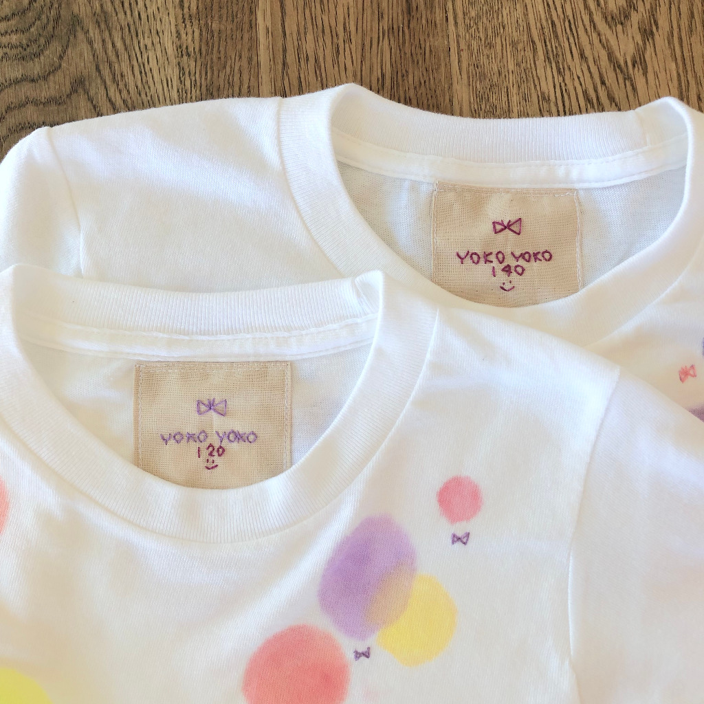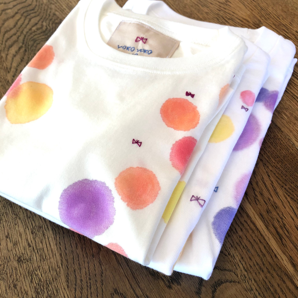 布用の絵の具でふんわりとした水玉模様を描いたもの。
