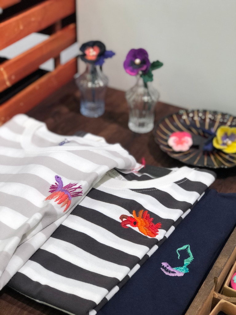 海の生き物、ウツボとタコを刺繍したものや、