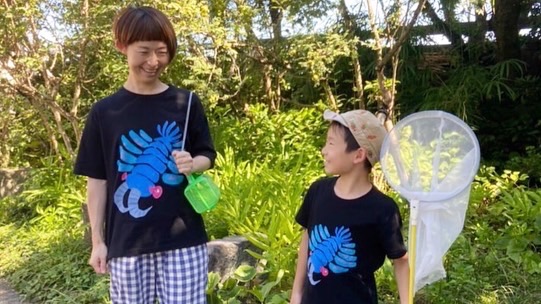 お手伝いの息子も、トンボを獲りに行った後、
