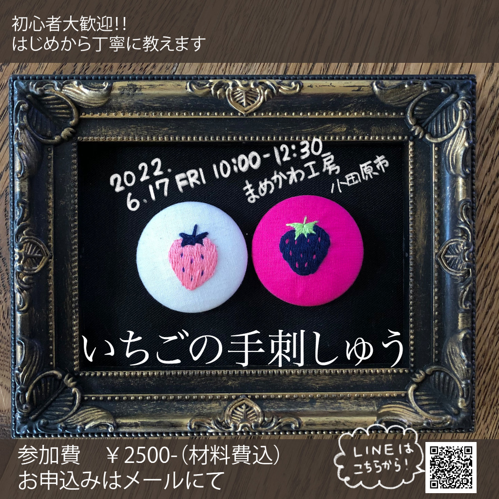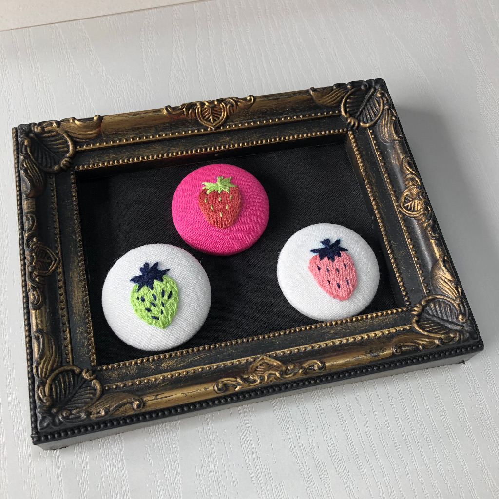 「手刺繍いちごのくるみボタンを作ろう」