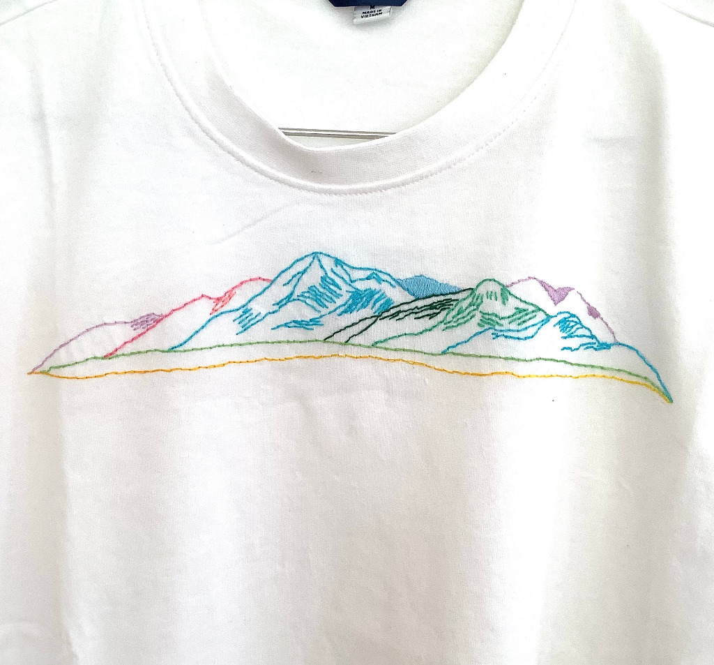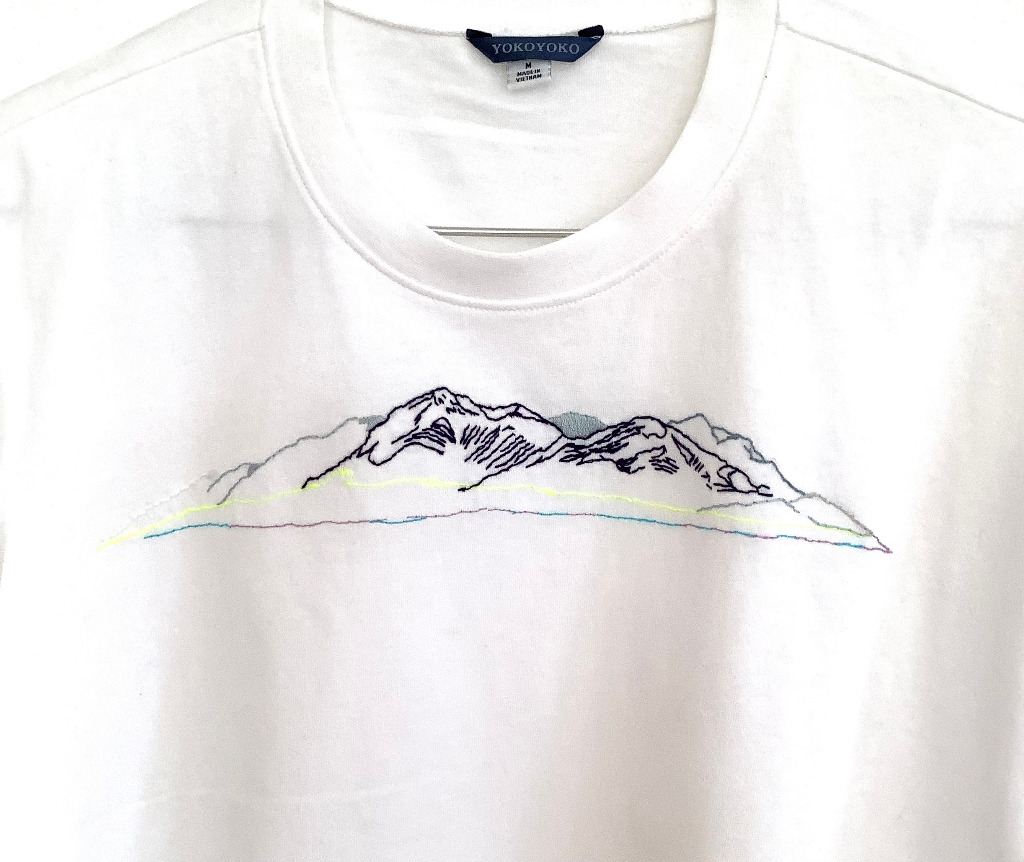新作 手刺繍 山のTシャツです。