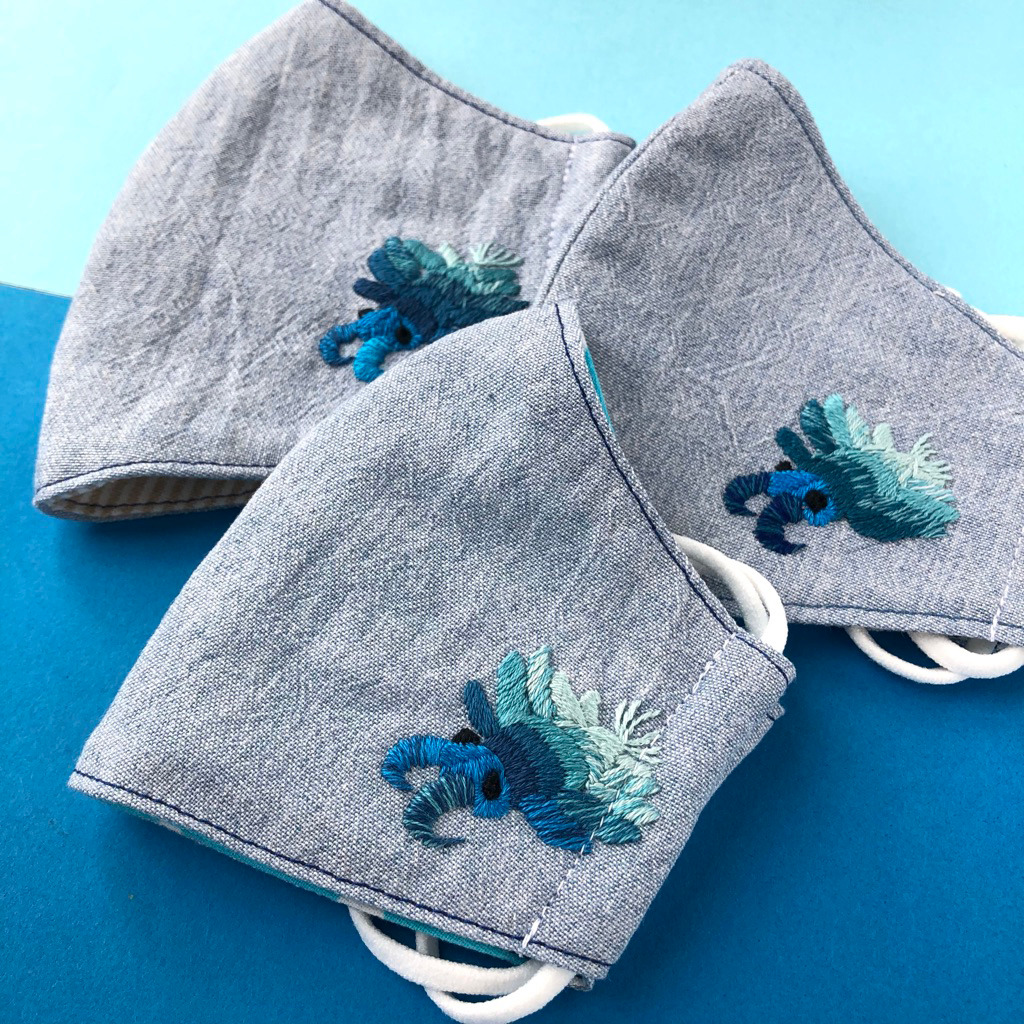今日はアノマロカリスの手刺繍マスクをupしました。